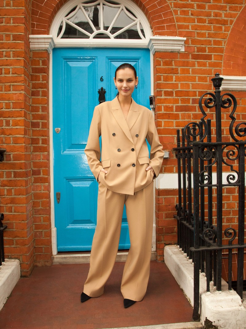 Брюки из костюмной поливискозы. Высокая посадка и глубокие складки от пояса визуально вытягивают силуэт — этот эффект усиливается, если надеть брюки с обувью на каблуке. Застегиваются на молнию и крючок, есть удобные карманы по бокам и сзади. Гладкая и плотная ткань сочетает в себе плюсы природных и искусственных нитей, хорошо дышит и долго служит. Без подкладки. Сделано в России.