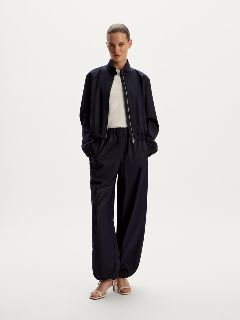 Широкие брюки на эластичном поясе — для комфортных расслабленных образов. С помощью кулисок их можно стилизовать по-разному — сделать силуэт прямым или собранным книзу. Выполнены из тонкой и пластичной ткани, созданной в Португалии: материал с деликатным блеском сочетает плюсы искусственных и натуральных волокон — он приятный на ощупь и долговечный. Застегиваются на молнию и крючок. Сделано в Турции.