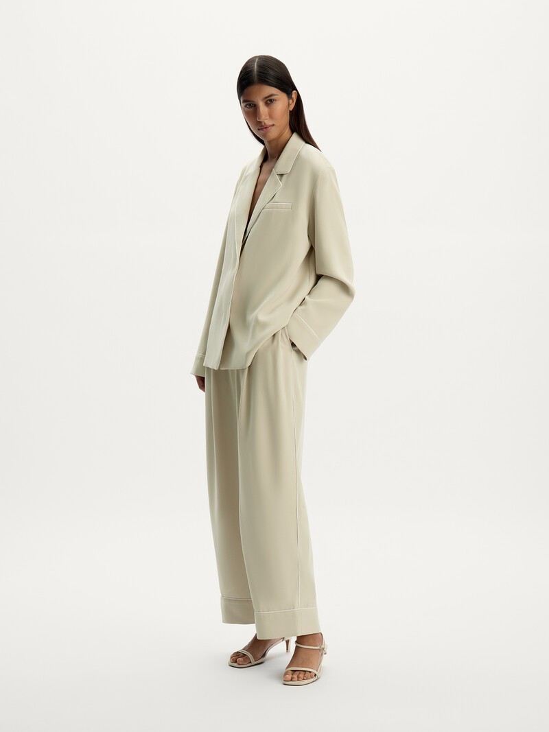 Прямые брюки со строгими складками, тонким кантом и подворотами одновременно напоминают о классике и отсылают к комфортным расслабленным образам. Выполнены из гладкой матовой ткани, напоминающей плотный шелк, от португальского поставщика Riopele. Сочетайте с топом и жакетом из нашей коллекции. Застегиваются на молнию и крючок. Сделано в России.