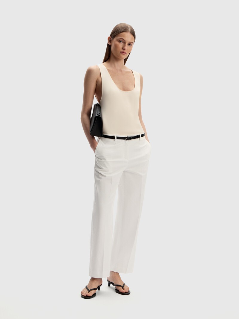 Универсальные брюки, чуть укороченные и зауженные — как в наших любимых фильмах о лете, любви и прогулках по спящему городу. Благодаря небольшим разрезам внизу такие будут отлично смотреться с лоферами или сандалиями на плоском ходу. Носите брюки с белой рубашкой, жакетом или футболкой — мы выбрали хлопок с уютной бархатистой фактурой, который подходит практически ко всему. Сделано в России.
