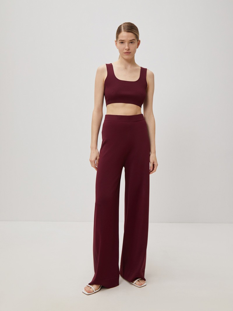 Широкие брюки с эластичным поясом создают ощущение отдыха, куда бы вы ни отправились. Брюки связаны из мягкой пряжи, в которой шелковистые волокна вискозы переплетаются с прочной искусственной нитью: несмотря на плотность трикотаж остается тонким и дышащим. Составьте комплект с топом и кардиганом из нашей коллекции. Сделано в Китае.