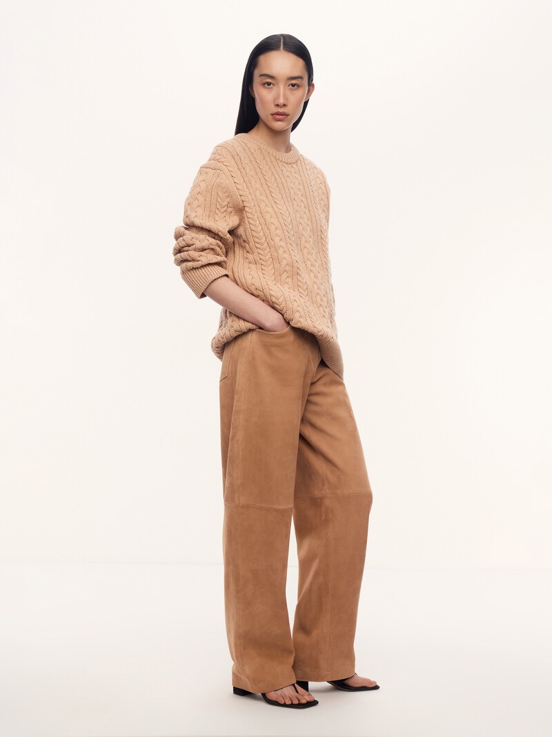 1. Бестселлер, который мы улучшили: брюки стали немного короче и аккуратнее сидят в бедрах 2. Мы выбираем для них плотную замшу африканской овцы с мягким ворсом — долговечную и согревающую 3. Уместны как в повседневном, так и в вечернем гардеробе — скроены как ваши любимые джинсы 4. Внутри эластичная подкладка до уровня колена 5. Поставщик, с которым мы сотрудничаем, имеет наивысшую оценку организации по защите окружающей среды LWG — золотой сертификат. Это значит, что фабрика полностью соответствует требованиям экологической безопасности, имеет все необходимые очистные сооружения и заботится о здоровье сотрудников Убедитесь, что брюки свободно сидят в бедрах — так они прослужат намного дольше.