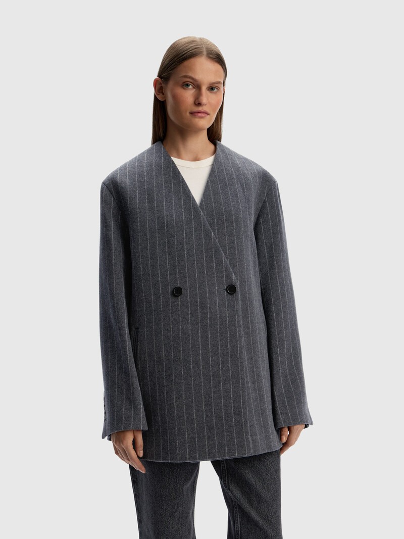 Лаконичное укороченное пальто длиной до середины бедра напоминает объемный пиджак: V-вырез без воротника, спущенное плечо, застежка на пару пуговиц. Такую модель комфортно надеть на жакет или поверх трикотажного джемпера — она легко заменит классический тренч в начале сезона. Выполнено из легкой и мягкой шерсти с добавлением кашемира и дополнено подкладкой на основе купро. Сделано в Китае.