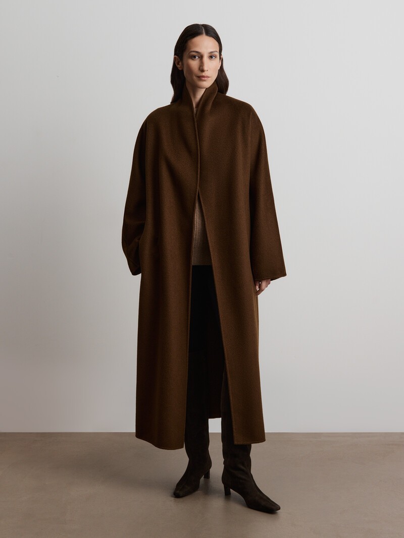 Длинное и просторное пальто-халат из самой ценной ткани в нашей коллекции — 100% монгольского кашемира. Удобная конструкция рукава позволяет носить его даже поверх пиджака или теплого свитера. Выполнено с применением технологии double face — благодаря спаянным швам с изнанки пальто такое же красивое, как и снаружи. Сделано в Китае.