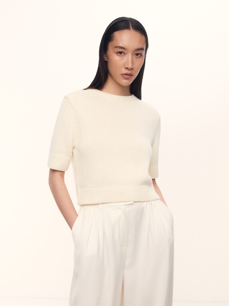 1. Текстурная и объемная пряжа создает эффект ручного вязания 2. 100% хлопок — дышащий и легкий джемпер будет комфортно носить в любой сезон 3. Отлично сочетается с брюками и юбками с высокой посадкой