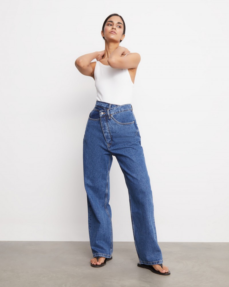 Джинсы с асимметричной застежкой. Широкие удлиненные брючины и слегка заниженная слонка создают эффект «перешитых» джинсов-бойфрендов и позволяют создать комфортный и актуальный образ. • Застежка на пуговицы • Высокая посадка • 100% хлопок плотностью 14 унций с выраженной структурой, отлично держит форму, долго служит Сделано в Китае.