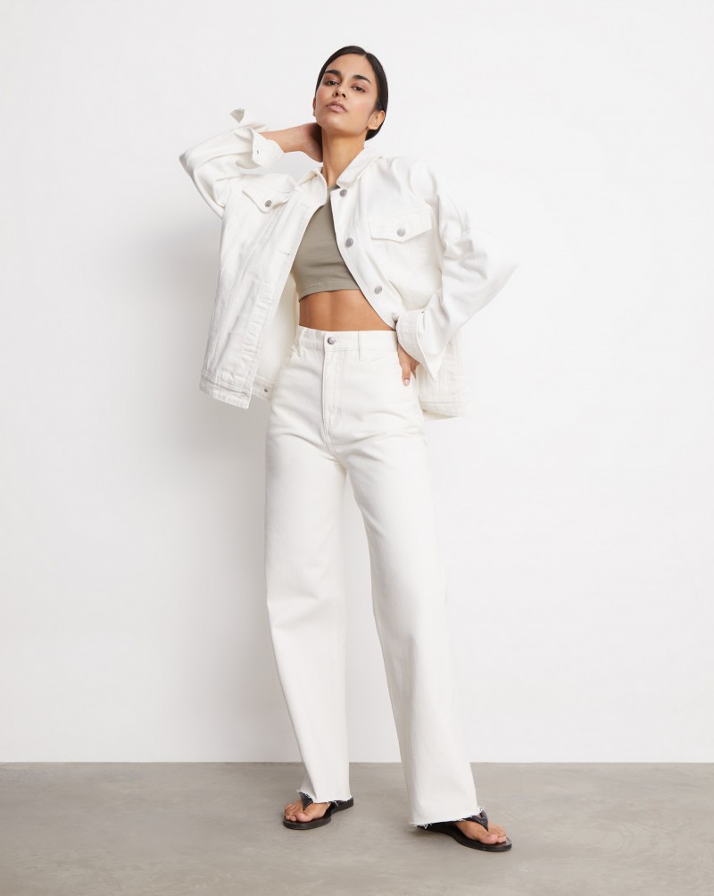 Широкие прямые джинсы. Актуальная модель этого сезона, в которой комфортный силуэт сочетается с мягкостью плотного хлопка. • Расширенный от бедра силуэт и полная длина • Высокая посадка на талии, застежка на молнию и пуговицу • Необработанный нижний край придает образу богемные черты • 100% хлопок плотностью 14 унций с выраженной структурой, отлично держит форму, долго служит Сделано в Китае.