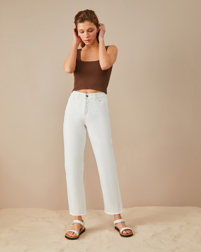 Джинсы с необработанным нижним краем. Прямые джинсы с посадкой на талии, застежка на пуговицу. Выполнены из 100% хлопка. Составят гармоничный летний образ с топами, сандалиями или спортивной обувью. Сделано в России