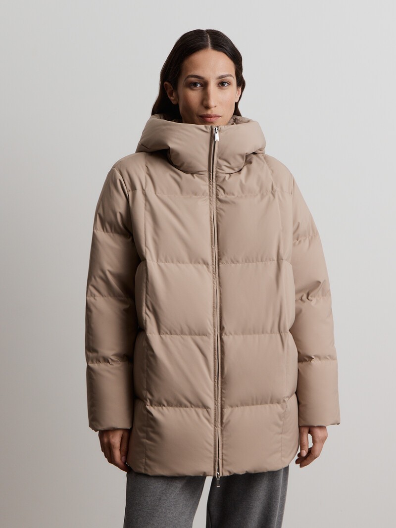 Наш бестселлер — прямой свободный пуховик на каждый день. Под глубокий несъемный капюшон с широким воротником легко поместится снуд и даже объемный шарф. Квадратная стежка надежно фиксирует воздушный и теплый утиный пух, а мягкая и плотная матовая ткань защищает от ветра. Индекс качества Fill Power равен 750 — максимально высокий показатель для утиного пуха. Сделано в Китае.