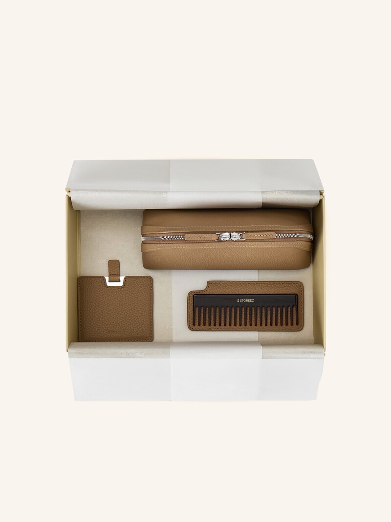 Получать подарки приятно, но еще приятнее дарить. Ощущать легкое волнение и трепет за пару минут до вручения. Перебирать в голове слова, которые точнее всего передадут любовь. Этот набор справится без слов — будет напоминать о вас каждый раз, когда нужно поправить прическу или макияж. Что внутри: 1. Косметичка из кожи 2. Зеркало в кожаном чехле 3. Гребешок в кожаном чехле