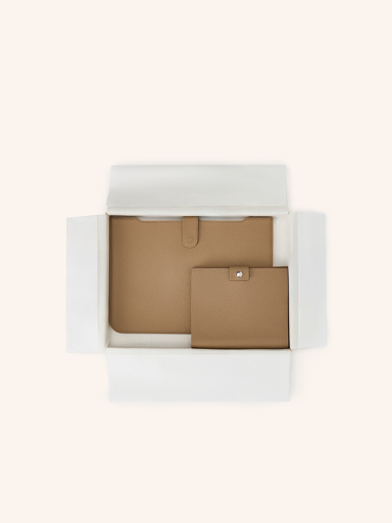 Получать подарки приятно, но еще приятнее дарить. Ощущать легкое волнение и трепет за пару минут до вручения. Перебирать в голове слова, которые точнее всего передадут любовь. Этот набор справится без слов — кожаные аксессуары позаботятся о порядке в сумке и на столе, напоминая о вас. Что внутри: 1. Блокнот Agenda мини 2. Чехол для ноутбука 14''