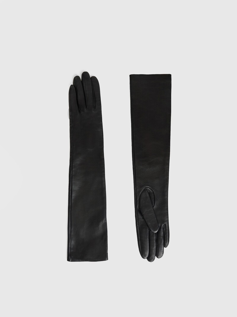 Акцентные элегантные и удобные перчатки длиной до локтя незаменимы для вечеринок и съемок. Благодаря подкладке из шелкового трикотажа аксессуар легко снимать и надевать. Выполнены из тонкой и эластичной кожи ягненка. При выборе размера убедитесь, что перчатки свободно облегают руку — так они прослужат вам намного дольше. Сделано в Китае.
