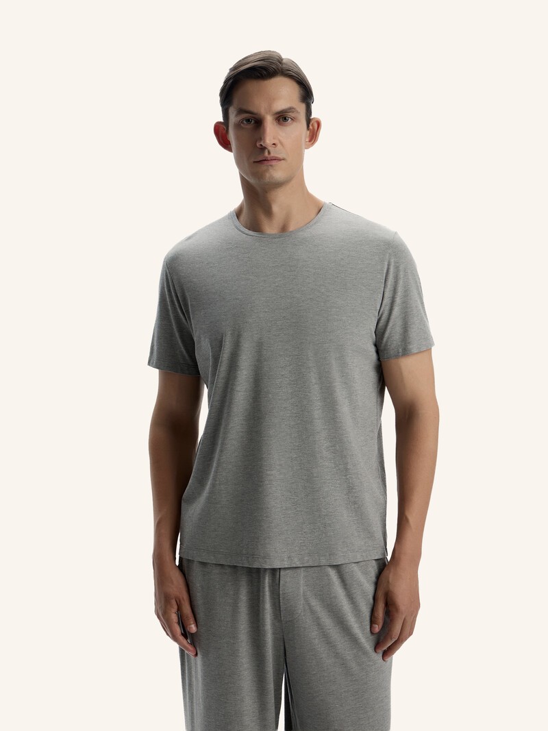 Лаконичная базовая футболка — легкая, приятно облегающая и незаметная под одеждой. Выполнена из тонкого и мягкого трикотажа с шелковистой фактурой. Материал на основе хлопка и модала дышит, впитывает влагу, не деформируется и не теряет цвет со временем.