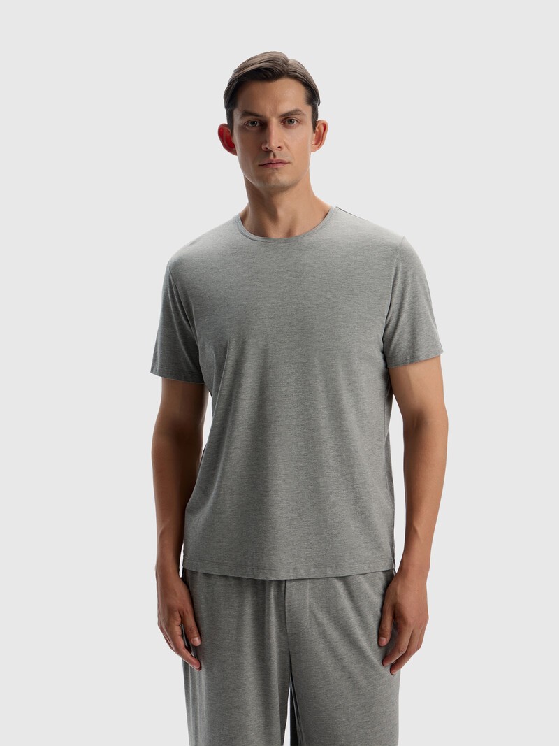 Лаконичная базовая футболка — легкая, приятно облегающая и незаметная под одеждой. Выполнена из тонкого и мягкого трикотажа с шелковистой фактурой. Материал на основе хлопка и модала дышит, впитывает влагу, не деформируется и не теряет цвет со временем. Сделано в Китае.