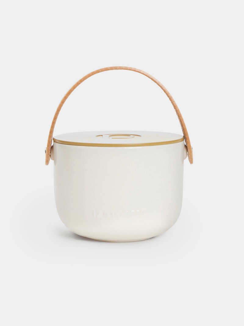 Большая восковая свеча с тонким ароматом бальзамина и кедра. Широкая керамическая пиала молочного оттенка дополнена ручкой из толстой кожи. Подставкой может служить металлическая крышка с логотипом 12 STOREEZ. Продается в подарочной упаковке. Сделано в Китае.