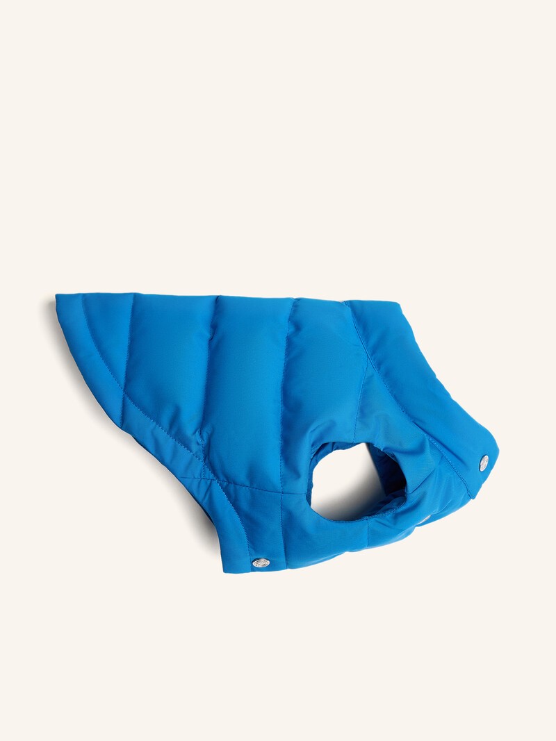 Утепленный жилет для собаки. Удобная застежка на кнопки позволяет быстро надеть или снять аксессуар, а высокий воротник защищает шею. Выполнен из плотной матовой ткани с защитой от небольших осадков и грязи — такую мы используем в наших моделях верхней одежды. Материал не продувается, приятен на ощупь и не шуршит при движении, а в качестве утеплителя использован легкий синтепух. Чтобы правильно выбрать размер, рекомендуем примерить жилет на питомца в магазине или дома в течение 14 дней после покупки.