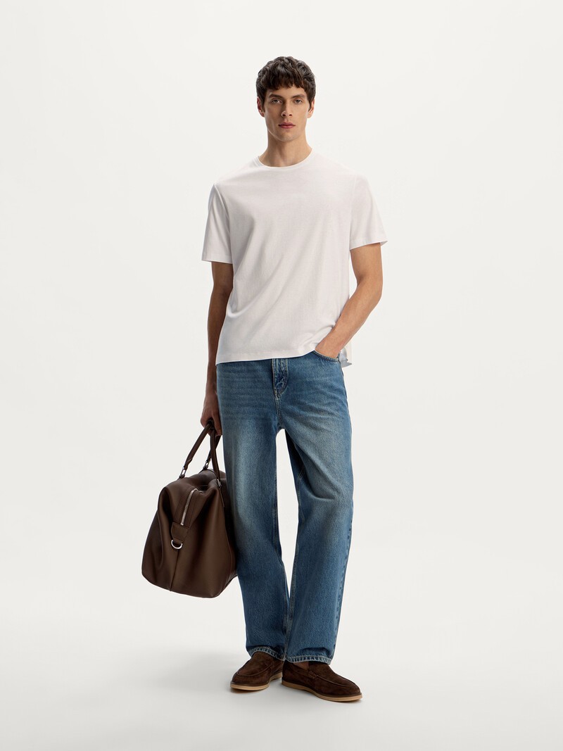 Модель Imperfect — экспериментальный образец или изделие с незаметными на первый взгляд нюансами вроде неровного шва. Такие модели не проходят требования к качеству 12 STOREEZ, но мы ценим вложенные в них труд и ресурсы: каждая может прослужить вам много лет и стать любимой. Классическая аккуратная футболка — универсальный силуэт, круглый вырез с отделкой рибаной. Мы выбрали для нее тонкий и прочный трикотаж из 100% хлопка пима, который намного мягче и долговечнее аналогов. Двойное переплетение нитей помогает изделию сохранять форму и не перекручиваться. Мерсеризованный хлопок — мягкий и гладкий, с шелковистым блеском. Специальная обработка волокон делает материал был более прочным и защищает от выцветания. Сделано в Китае.