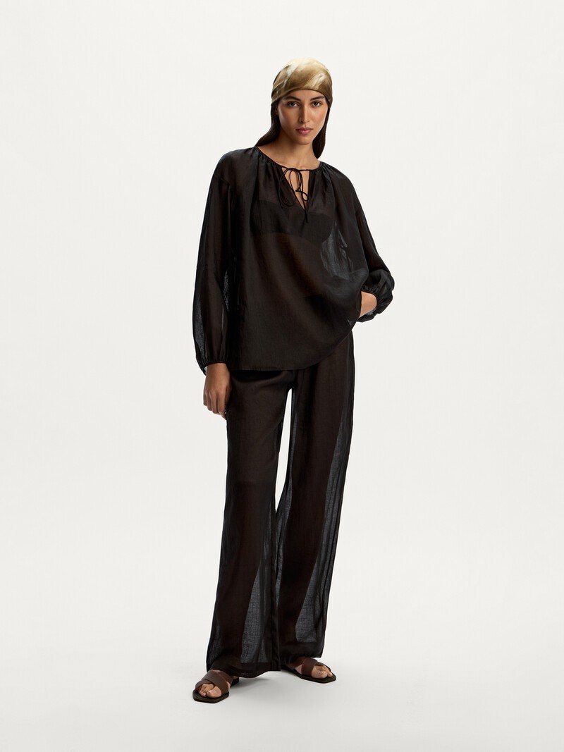 Модель Imperfect — экспериментальный образец или изделие с незаметными на первый взгляд нюансами вроде неровного шва. Такие модели не проходят требования к качеству 12 STOREEZ, но мы ценим вложенные в них труд и ресурсы: каждая может прослужить вам много лет и стать любимой. Широкие длинные брюки на тонком эластичном поясе со шнурком — для пляжного отдыха или прогулок в кафе за мороженым. Они подойдут к любому купальнику из нашей коллекции. Выполнены из невесомого и полупрозрачного материала, напоминающего лен. Рами — экологически чистая ткань из волокон крапивы. Для ее производства не нужны гербициды и пестициды и расходуется намного меньше воды. Сделано в Китае.