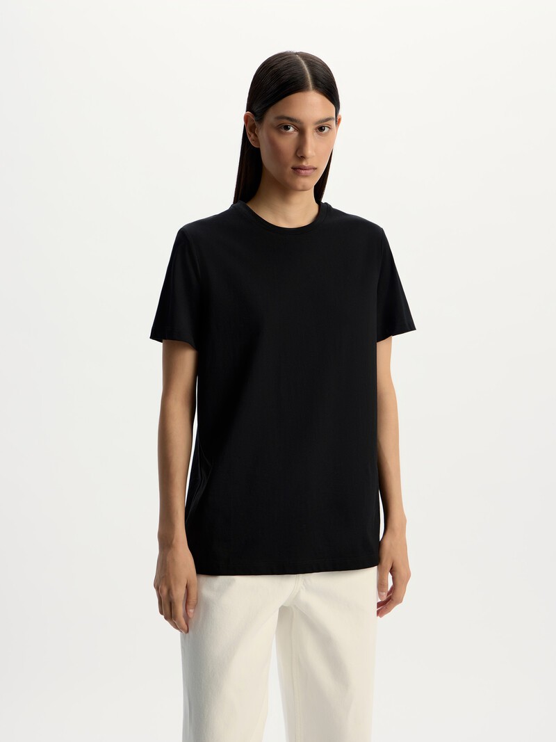 Модель Imperfect — экспериментальный образец или изделие с незаметными на первый взгляд нюансами вроде неровного шва. Такие модели не проходят требования к качеству 12 STOREEZ, но мы ценим вложенные в них труд и ресурсы: каждая может прослужить вам много лет и стать любимой. Классическая прямая футболка для повседневных образов с джинсами, юбками или легким костюмом. Эту базовую модель мы шьем из длинноволокнистого хлопка, лучшего среди аналогов, и используем переплетение интерлок, чтобы надолго сохранить эластичность трикотажа. Мерсеризованный хлопок — мягкий и гладкий, с шелковистым блеском. Специальная обработка волокон делает материал более прочным и защищает от выцветания. Сделано в Китае.
