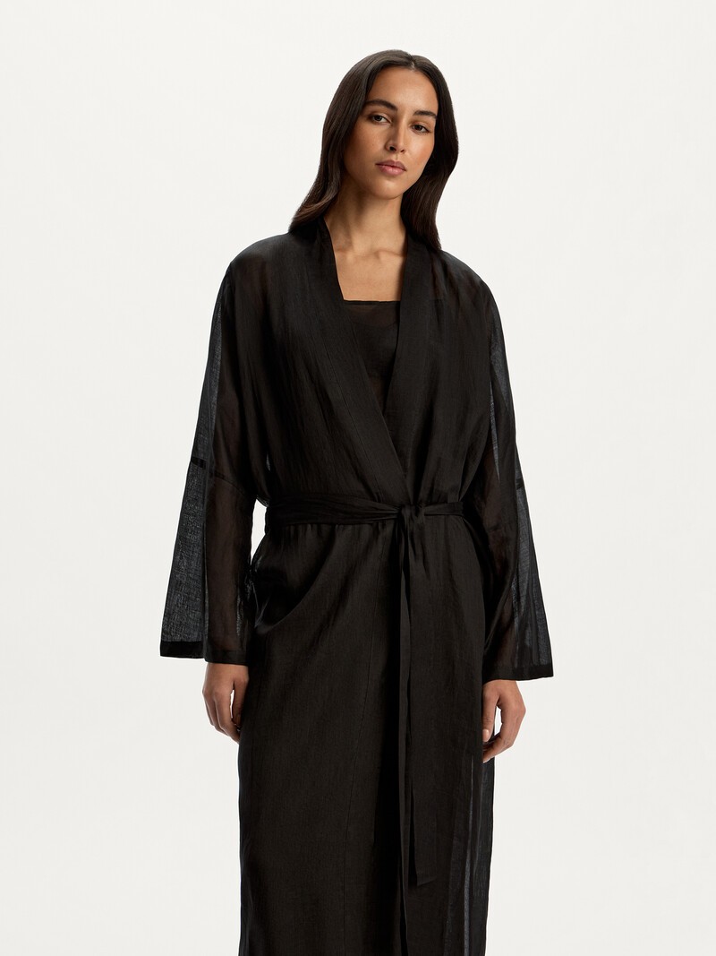Модель Imperfect — экспериментальный образец или изделие с незаметными на первый взгляд нюансами вроде неровного шва. Такие модели не проходят требования к качеству 12 STOREEZ, но мы ценим вложенные в них труд и ресурсы: каждая может прослужить вам много лет и стать любимой. Объемный длинный халат с карманами и поясом — альтернатива пляжному платью или тунике. Выполнен из невесомого и полупрозрачного материала, по своим свойствам похожего на лен. Широкие рукава и отсутствие застежки придают ему сходство с кимоно и создают расслабленный образ. Рами — экологически чистая ткань из волокон крапивы. Для ее производства не нужны гербициды и пестициды и расходуется намного меньше воды. Сделано в Китае.