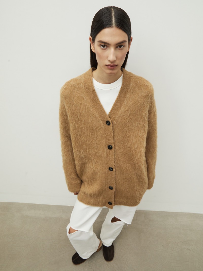Модель Imperfect — экспериментальный образец или изделие с незаметными на первый взгляд нюансами вроде неровного шва. Такие модели не проходят требования к качеству 12 STOREEZ, но мы ценим вложенные в них труд и ресурсы: каждая может прослужить вам много лет и стать любимой. Уютный, теплый и пушистый кардиган из шерсти альпаки — наш бестселлер. Свободный силуэт позволяет сочетать его с платьями, джинсами и даже носить как верхнюю одежду. Такой трикотаж с длинным ворсом достаточно плотный и может немного покалывать, но отлично держит форму благодаря планкам, связанным резинкой. Сделано в Китае.