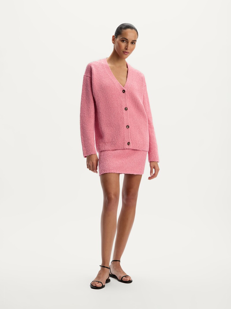 Модель Imperfect — экспериментальный образец или изделие с незаметными на первый взгляд нюансами вроде неровного шва. Такие модели не проходят требования к качеству 12 STOREEZ, но мы ценим вложенные в них труд и ресурсы: каждая может прослужить вам много лет и стать любимой. Универсальный уютный кардиган — свободный, с глубоким V-вырезом и спущенным плечом. Связан в две нити крупными воздушными петлями из пряжи с эффектом букле, оттенок которой напоминает сахарную вату. Трикотаж получается легким и отлично подходит для лета, а связанные резинкой края защищают кардиган от деформации. Застегивается на пуговицы под рог. Сочетайте с юбкой мини из нашей коллекции. У этого изделия низкая пиллингуемость. При правильном уходе первые пилли могут появиться на нем в среднем через 10 носок. Сделано в Китае.