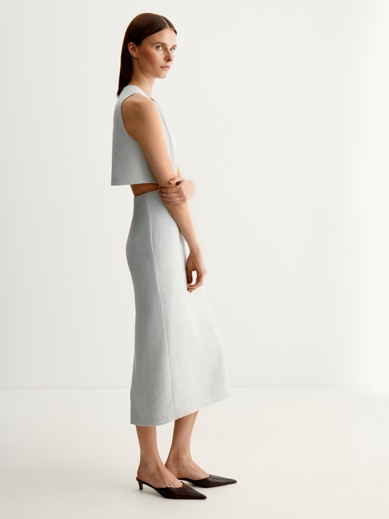 Модель Imperfect — экспериментальный образец или изделие с незаметными на первый взгляд нюансами вроде неровного шва. Такие модели не проходят требования к качеству 12 STOREEZ, но мы ценим вложенные в них труд и ресурсы: каждая может прослужить вам много лет и стать любимой. Элегантное и комфортное платье для летних дней. У этой модели необычный крой: спереди платье напоминает футляр, а со спины выглядит как комбинация свободного топа и юбки. Выполнено из португальской ткани на основе льна с добавлением волокон вискозы и полиэстера. Она отличается неоднородной фактурой, присущей натуральным материалам, но более мягкая и меньше мнется. На подкладке из тонкого хлопка. Это изделие из капсулы Hearts & Storeez, созданной совместно с Фондом «Обнаженные сердца». 10% от продаж этих изделий в России будут направлены на поддержку программ Фонда. Сделано в России.