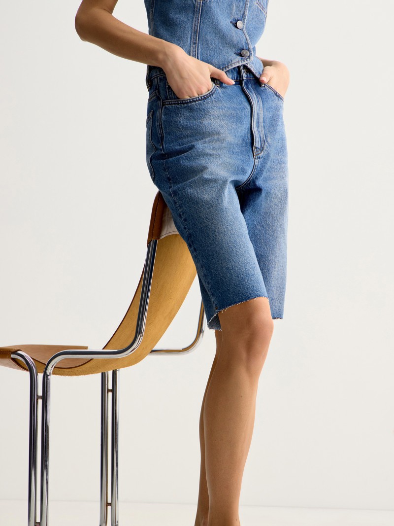 Модель Imperfect — экспериментальный образец или изделие с незаметными на первый взгляд нюансами вроде неровного шва. Такие модели не проходят требования к качеству 12 STOREEZ, но мы ценим вложенные в них труд и ресурсы: каждая может прослужить вам много лет и стать любимой. Прямые шорты с высокой посадкой, длиной чуть выше колена и необработанным краем — универсальная модель, которую можно носить с жилетом из нашей коллекции, футболкой или рубашкой. Материал — классический синий деним плотностью 13 Oz, прочный, с выраженным рубчиком. Застегиваются на болты. Международный стандарт OCS (Organic Content Standard) подтверждает, что хлопок выращен бережным способом, без пестицидов, чтобы сохранить чистоту почвы и воды и исключить вредное влияние на здоровье фермеров. Сделано в Китае.