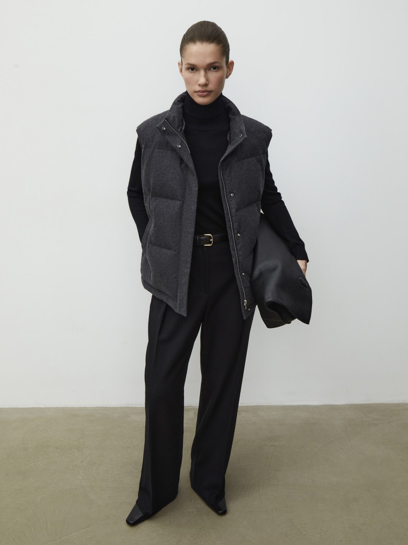 Наш бестселлер — свободная лаконичная модель с высоким воротником, удлиненной спинкой и съемным капюшоном, который защитит от ветра. Глубокая пройма позволяет надеть жилет даже с толстым свитером, а утяжка по нижнему краю — легко регулировать объем. Индекс Fill Power — 750, максимально высокий для натурального утиного пуха. Сделано в Китае.