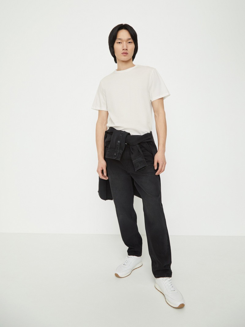 Джинсы из прочного и мягкого хлопка. Универсальный графитовый оттенок и удобный крой — такие джинсы сочетаются с любым верхом и обувью. - Средняя посадка, зауженные брючины, полная длина - Застежка на молнию и пуговицу - Длинноволокнистый хлопок с саржевым переплетением (плотность 13,5 унций) — долговечный и стойкий к трению - Можно подобрать джинсовую рубашку из коллекции 12 STOREEZ Сделано в Турции.
