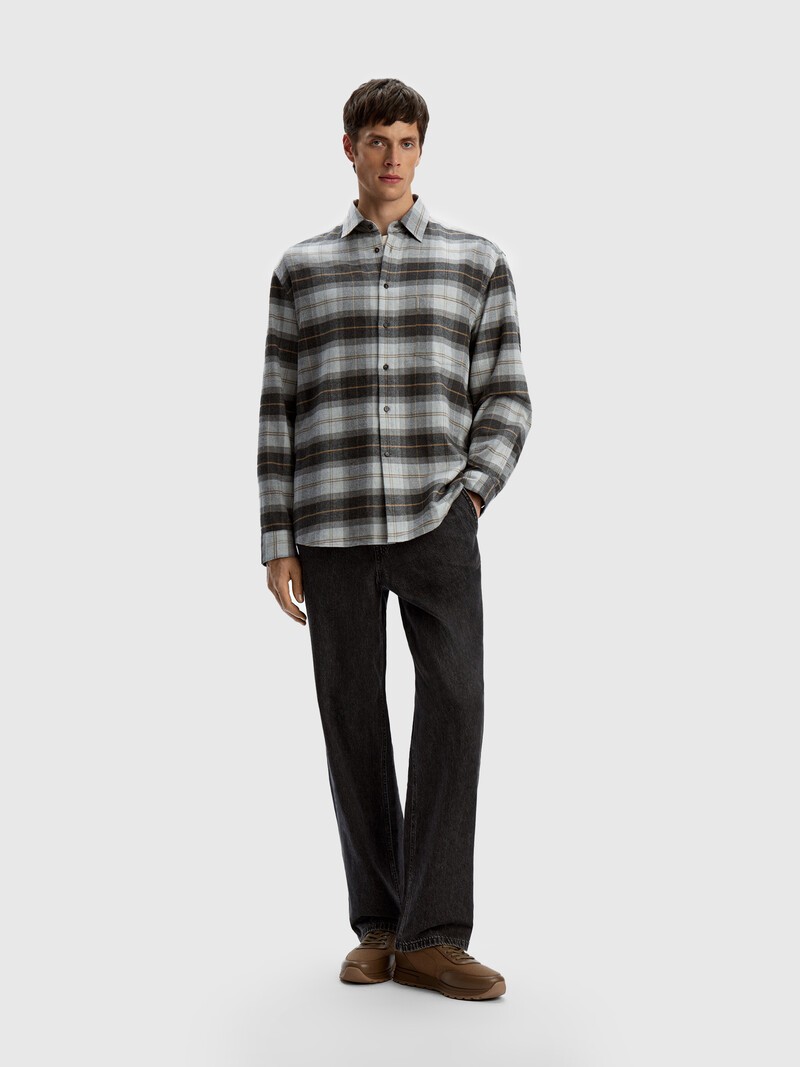 Джинсы из легкого денима — прямые, со средней посадкой, стандартной длины. С помощью вощеного хлопкового шнурка можно регулировать ширину эластичного пояса. Для этой модели мы выбрали облегченный деним плотностью 10,8 Oz в темно-сером, почти черном оттенке, который легко вписать в гардероб. Сделано в Китае