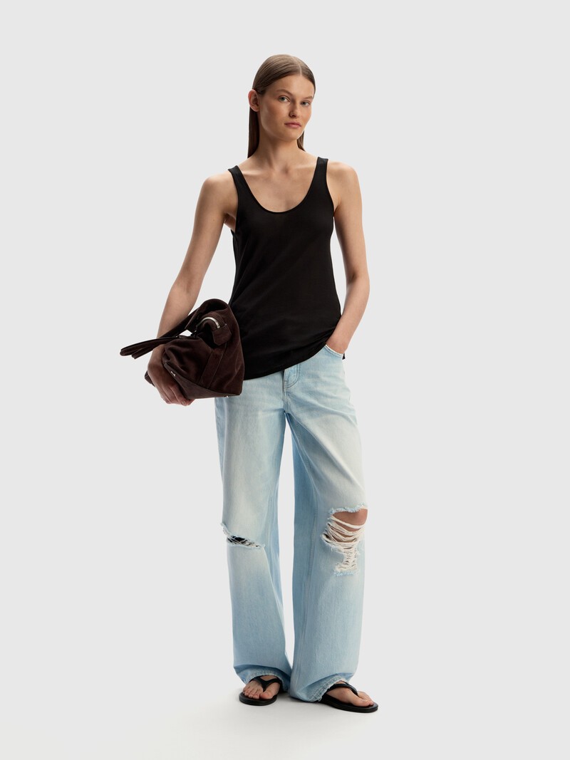 Прямые джинсы полной длины, со средней посадкой и патчем из натуральной кожи — комфортные и с особым характером. Разрывы на уровне коленей придают им винтажный вид, а шелковистый материал подтверждает: расстаться с этими джинсами будет непросто. Материал плотностью 15 Oz создан на итальянской фабрике Candiani, знакомой ценителям аутентичного денима. Застегиваются на болты. Международный сертификат GOTS (Global Organic Textile Standard) — самый строгий стандарт для органических тканей, подтверждает не только экологичность выращивания, но и социальную ответственность производителя, то есть хорошие условия и достойную оплату труда фермеров. Сделано в Турции.