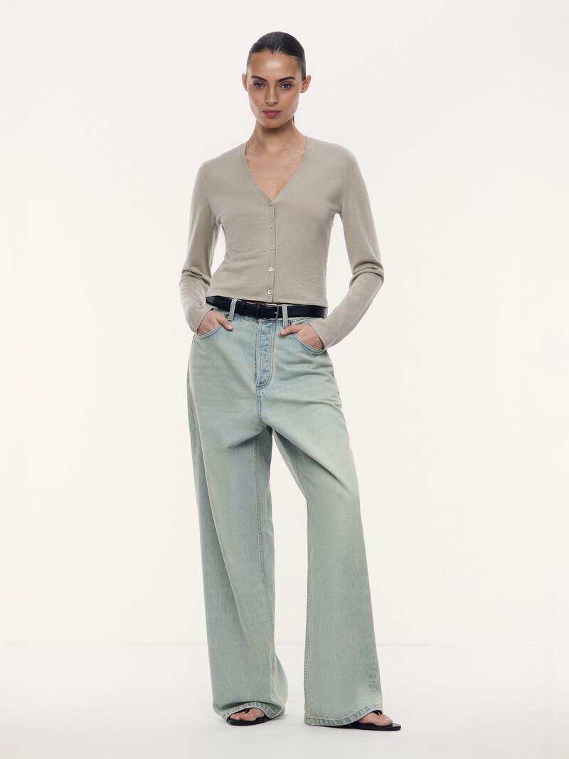 1. Подчеркнуто расслабленные, удлиненные джинсы с низкой посадкой. Одинаково гармонично сочетаются с босоножками на каблуке или массивными кроссовкам 2. Деним создан на фабрике Kaihara из города Фукуяма. Основанная в 1893 году и оказавшая большое влияние на развитие японского денима, эта фабрика считается одной из лучших в мире 3. Плотность денима — 12,5 oz, он хорошо держит форму и имеет слегка желтоватый винтажный оттенок, который придала ему варка с тинтом 4. Застегиваются на болты и дополнены патчем из натуральной кожи