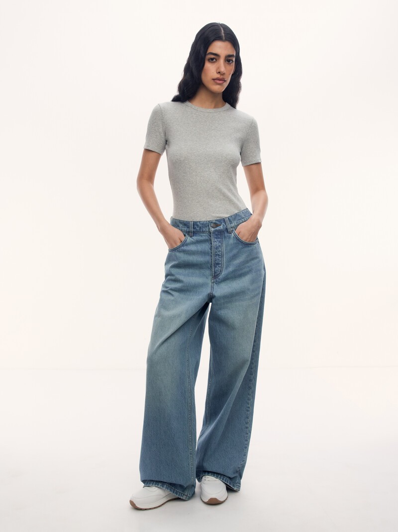 1. Подчеркнуто расслабленные, удлиненные джинсы с низкой посадкой. Одинаково гармонично сочетаются с босоножками на каблуке или массивными кроссовкам 2. Деним создан на фабрике Kaihara из города Фукуяма. Основанная в 1893 году и оказавшая большое влияние на развитие японского денима, эта фабрика считается одной из лучших в мире 3. Плотность денима — 12,5 Oz, он хорошо держит форму и имеет ярко выраженный рубчик 4. Застегиваются на болты и дополнены патчем из натуральной кожи