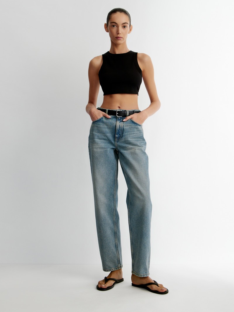 Наш бестселлер: универсальные прямые джинсы. Высокая посадка, полная длина, застежка на молнию — такую базовую модель легко вписать в любой гардероб. Материал — классический деним плотностью 13,5 Oz от нашего турецкого поставщика. Ткань окрашена с помощью легкого тинта, который можно заметить в местах потертостей. Международный сертификат GOTS (Global Organic Textile Standard) — самый строгий стандарт для органических тканей, подтверждает не только экологичность выращивания, но и социальную ответственность производителя, то есть хорошие условия и достойную оплату труда фермеров. Сделано в Турции.