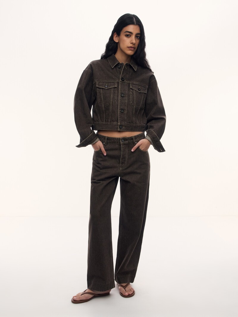 1. Обновленная версия классических прямых джинсов: слегка укороченные, комфортная средняя посадка и плавный, изогнутый силуэт 2. Плотный и тактильно приятный деним 13 Oz шоколадного цвета с деликатными эффектами варки 3. Держат форму благодаря обработке нижнего края, как в текстильных брюках 4. Застегиваются на молнию и дополнены патчем из натуральной кожи