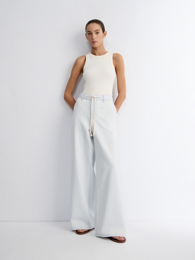 Новинка: широкие удлиненные джинсы с низкой посадкой и декоративным шнурком из хлопка незаменимы для летних расслабленных образов. Для этой модели мы выбрали облегченный деним плотностью 10 Oz — мягкую, тонкую ткань, дышащую и приятную. Международный стандарт OCS (Organic Content Standard) подтверждает, что хлопок выращен бережным способом, без пестицидов, чтобы сохранить чистоту почвы и воды и исключить вредное влияние на здоровье фермеров. Сделано в Китае.