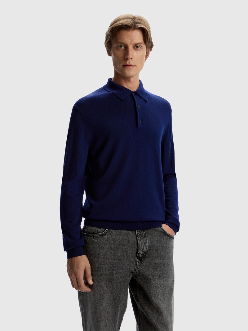 Базовый джемпер-поло из тонкой шерсти мериноса. Его легко включить в гардероб и сочетать с любыми брюками — от классических костюмных до расслабленных джоггеров и джинсов. Пластичный и легкий трикотаж из шерсти австралийского мериноса совсем не колется, поэтому джемпер комфортно носить как первый слой. Сделано в Китае.