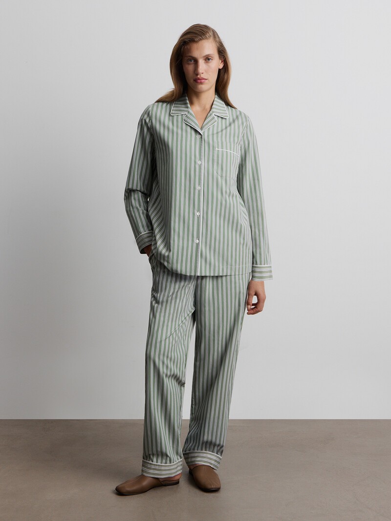 Свободная пижама из 100% хлопка идеальна для комфортного сна и отдыха. Ткань обладает особыми свойствами: снаружи она бархатистая, как персик, а с изнанки — гладкая, приятно прохладная. Если вы забираете заказ в магазине, наши консультанты упакуют пижаму в фирменную коробку, как подарок. Сделано в Турции.