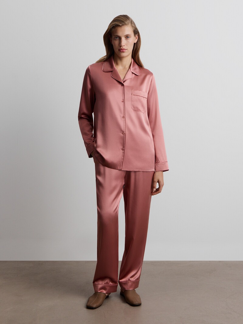Пижама из натурального шелка Mulberry — свободная рубашка с застежкой на перламутровые пуговицы и брюки с эластичным поясом. Пижама выполнена из плотного тутового шелка, который приятно холодит кожу и хорошо держит форму, позволяя вам надевать ее не только для сна, но и на отдыхе. Упакована в фирменную коробку 12 STOREEZ. 100% Mulberry шелк — самый ценный вид шелковых волокон. Сотканный из тончайших нитей, этот матовый материал отличается особой прочностью. Сделано в Китае.