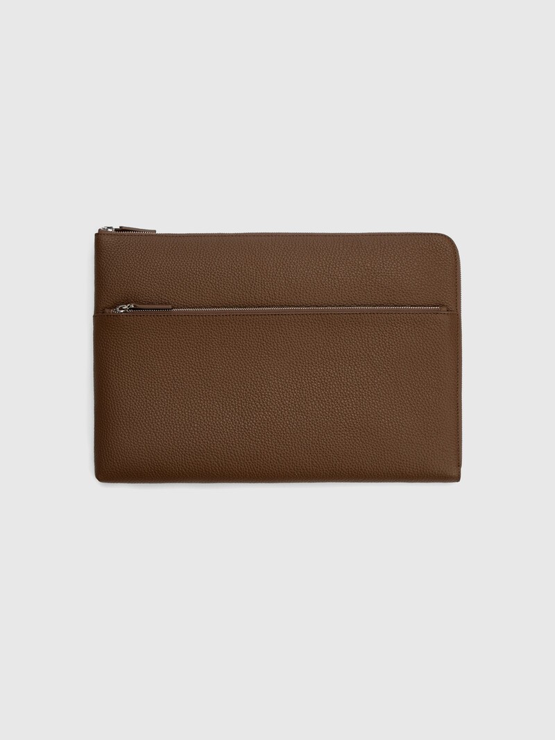 Аккуратный и вместительный чехол для ноутбука диагональю 15 дюймов — широкий внешний карман, серебристая молния, подкладка из плотного текстиля с кармашками для телефона, документов и ручки. Выполнен из мягкой разбитой кожи. Натуральный, тактильно приятный материал защитит ноутбук от ударов и царапин, а универсальный шоколадный оттенок позволит вписать аксессуар в любой образ. Продается в коробке. Сделано в Китае.