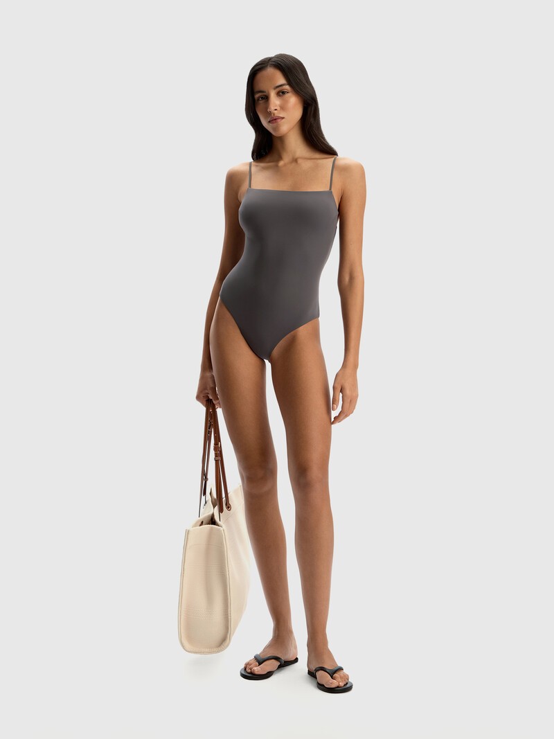 Слитный купальник с наполовину открытой спинкой и несъемными бретелями. Эластичные швы обеспечивают плотное прилегание, бретели можно отрегулировать по росту, а тонкие чашки — убрать, если не понадобятся. Выполнен из гладкого плотного материала, который хорошо держит форму и не теряет со временем яркости и эластичности, и дополнен подкладкой из более легкой и тонкой ткани. Продается в водонепроницаемой косметичке из рогожки с застежкой на кнопки. Сделано в Китае.