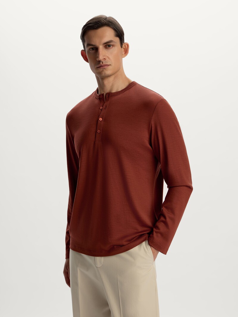 Базовый лонгслив комфортно прилегает к телу — такой можно носить как первый слой с пиджаком или самостоятельно, сочетая с джинсами или трикотажными брюками. Выполнен из тонкой шерсти австралийского мериноса, которая не просвечивает, дышит и мягко согревает. Застегивается на пуговицы из натурального перламутра. Сделано в Китае.