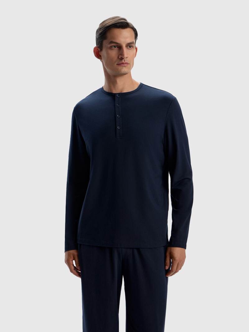 Комфортный универсальный лонгслив мягко облегает силуэт: такой незаменим для отдыха дома и в путешествии. Выполнен из тонкого шелковистого трикотажа на основе хлопка и модала. Струящийся материал с приятной на ощупь фактурой отлично дышит, впитывает влагу, не растягивается и не выцветает со временем. Застегивается на тонированные пуговицы из перламутра. Сделано в Китае.