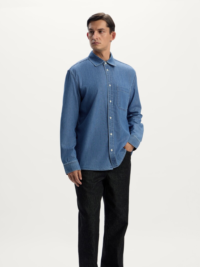Классическая рубашка из тонкого и шелковистого денима плотностью 7,2 Oz — комфортная, легкая и лаконичная. Стандартная длина, аккуратный силуэт, скругленный нижний край — такую модель можно носить навыпуск или заправить внутрь. Приятный на ощупь пластичный и мягкий материал, смесь хлопка и лиоцелла, разработан в Италии, а произведен в Китае. Застегивается на пуговицы из натурального перламутра. Лиоцелл — нежное на ощупь волокно из древесины эвкалипта, современная и экологичная альтернатива вискозе. Во время производства не используются токсичные вещества, поэтому вредные выбросы не загрязняют атмосферу. Сделано в Китае.