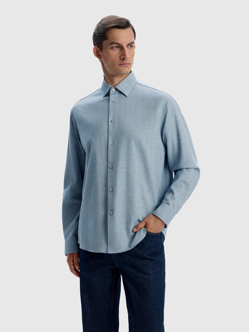 Прямая аккуратная рубашка в елочку. Такую можно носить как первый слой или сочетать с нашей футболкой Slim. Выполнена из ворсистой, плотной мягкой фланели с уютным двусторонним начесом и застегивается на прессованные пуговицы из коралла и перламутра. Ворсистая ткань со временем может скатываться — справиться с пиллями поможет стирка. Сделано в Китае.