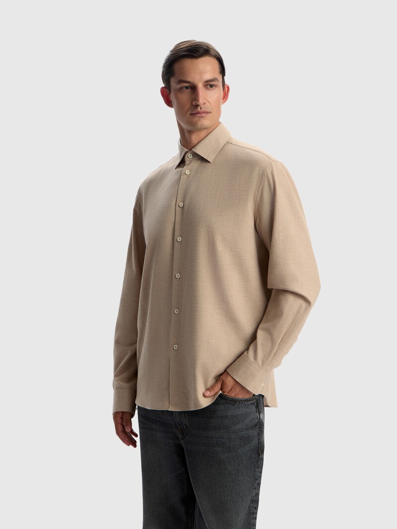 Прямая аккуратная рубашка в елочку. Такую можно носить как первый слой или сочетать с нашей футболкой Slim. Выполнена из ворсистой, плотной мягкой фланели с уютным двусторонним начесом и застегивается на прессованные пуговицы из коралла и перламутра. Ворсистая ткань со временем может скатываться — справиться с пиллями поможет стирка. Сделано в Китае.