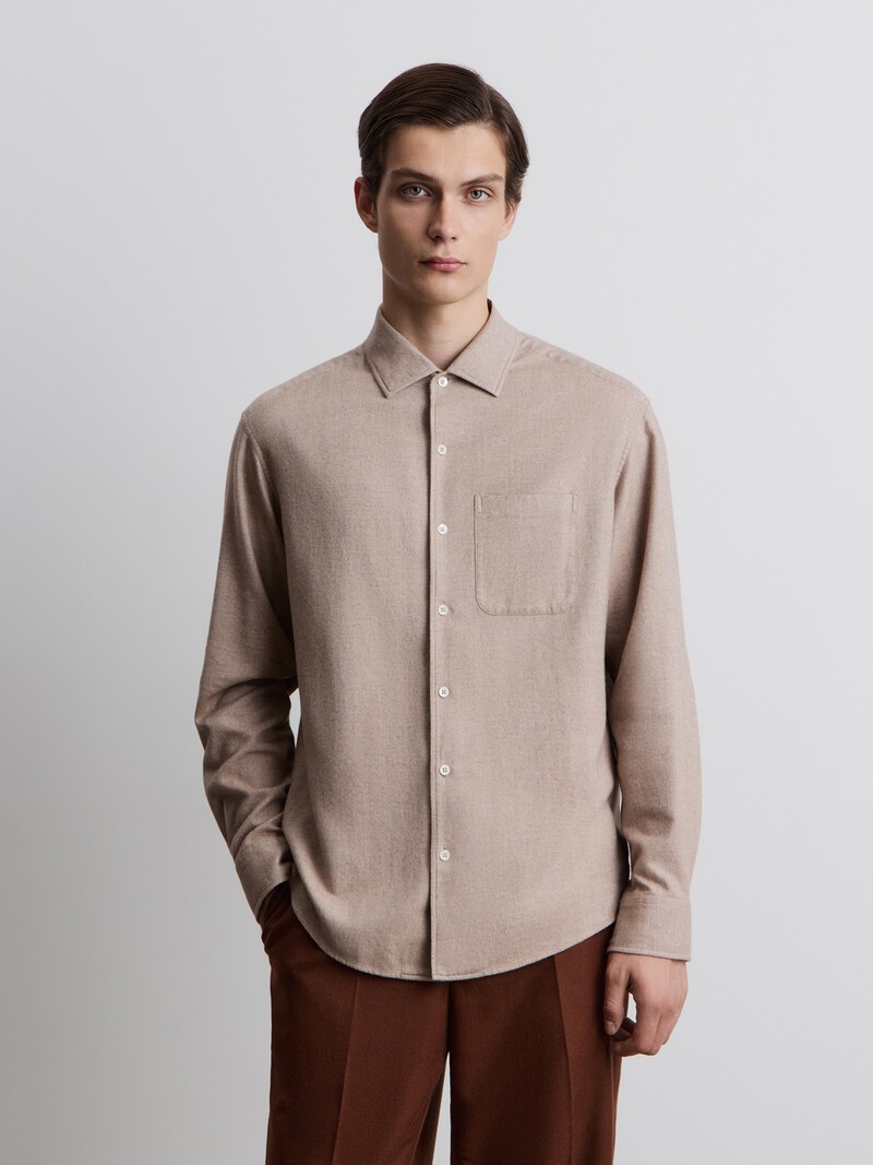 Рубашка из теплого бархатистого хлопка в елочку, созданного итальянской фабрикой, которая сотрудничает с Dior, Hermes и Prada. Мягкость ткани заметна даже визуально: плавные линии манжет и воротника создают более расслабленный образ, чем классические сорочки, а светлые оттенки легко вписываются и освежают гардероб. Ворсистая ткань со временем может скатываться — справиться с пиллями поможет стирка. Сделано в Китае.