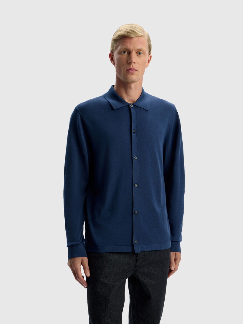 Свободная легкая рубашка из хлопка и шелка, с мягким отложным воротником и застежкой на пуговицы. Связана из гладкой, прохладной к коже пряжи с деликатным матовым блеском — такой трикотаж не только комфортный, но и интересно выглядит. Сочетайте с футболкой из нашей коллекции. Сделано в Китае.