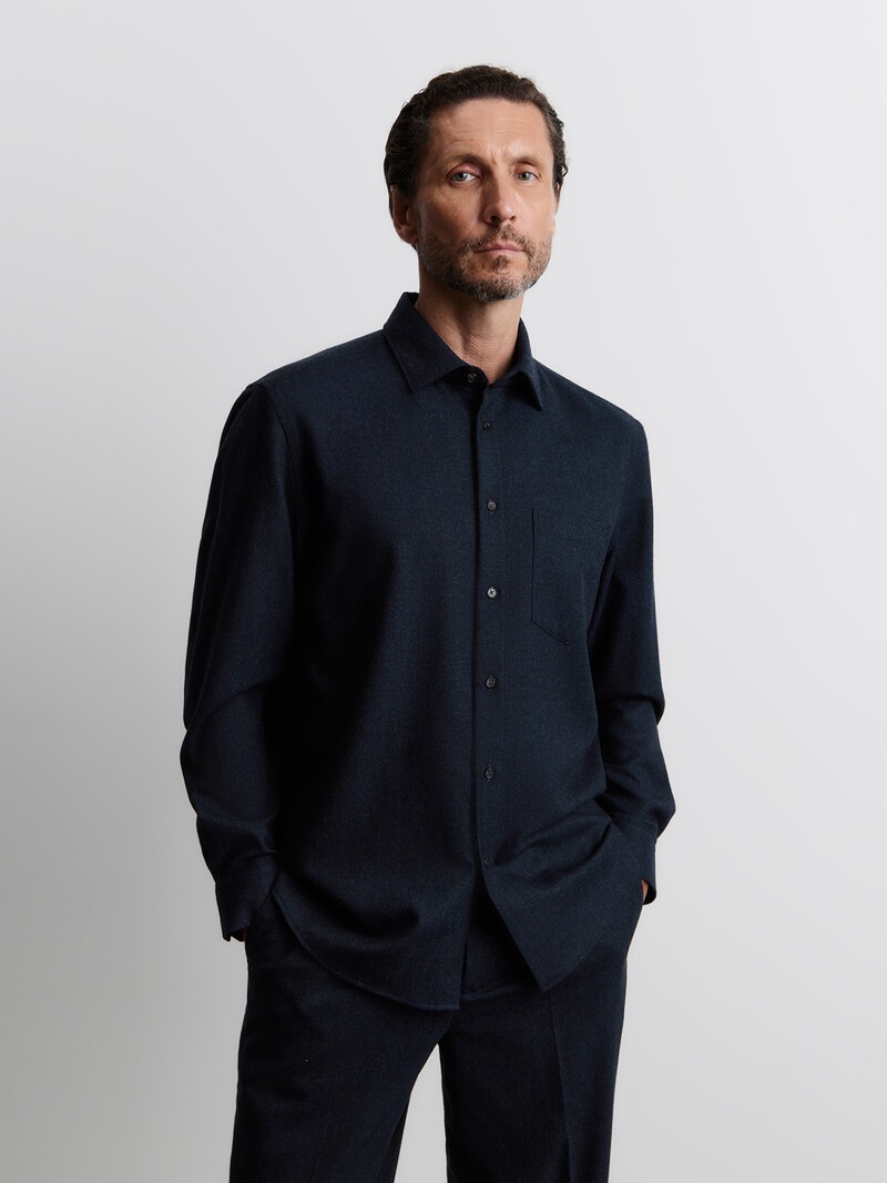 Расслабленная и уютная рубашка из мягкой теплой фланели от итальянской фабрики Drago. Инновационная обработка тонкой шерсти защищает ее волокна от пыли и влаги, помогая вам сохранять безупречный вид в течение дня. Благодаря свободному силуэту и скругленным разрезам рубашку комфортно носить самостоятельно или поверх футболок. Сделано в Китае.